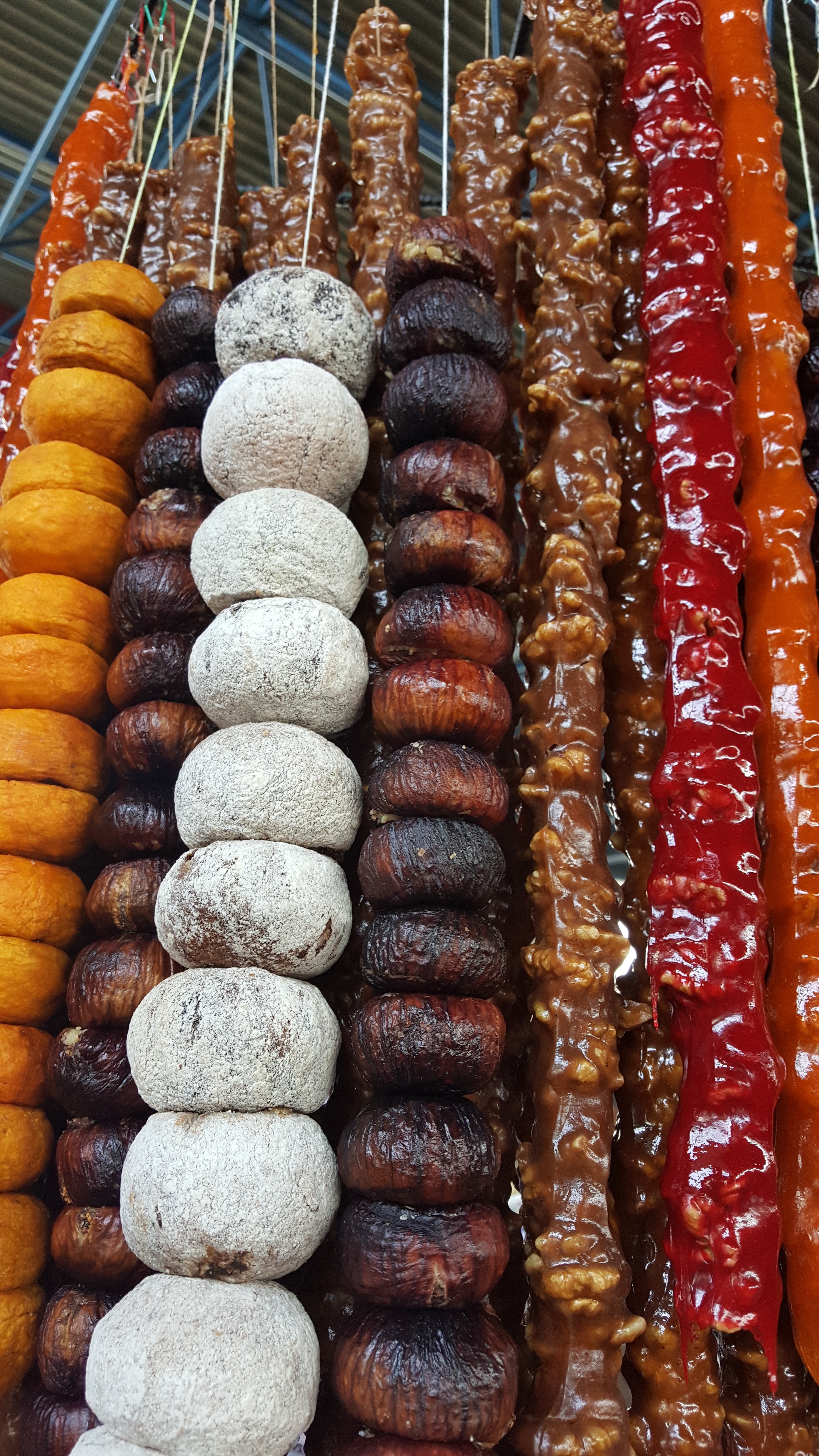 Every kind of Armenian cheese you can imagine. The coolest is hanging just to the side of the woman on the right — it’s string cheese, but not like we know it, the cheese is actually string sized, roughly the size of strands of yarn!